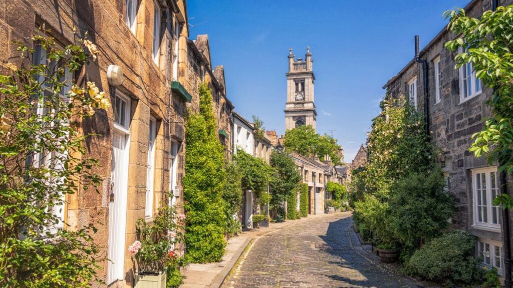 Set along the Water of Leith, this neighbourhood is lined with cobbled lanes, stone bridges, and Georgian and Victorian townhouses. It’s a popular area for artists, professionals, and families, with around 10,000 people living in Stockbridge