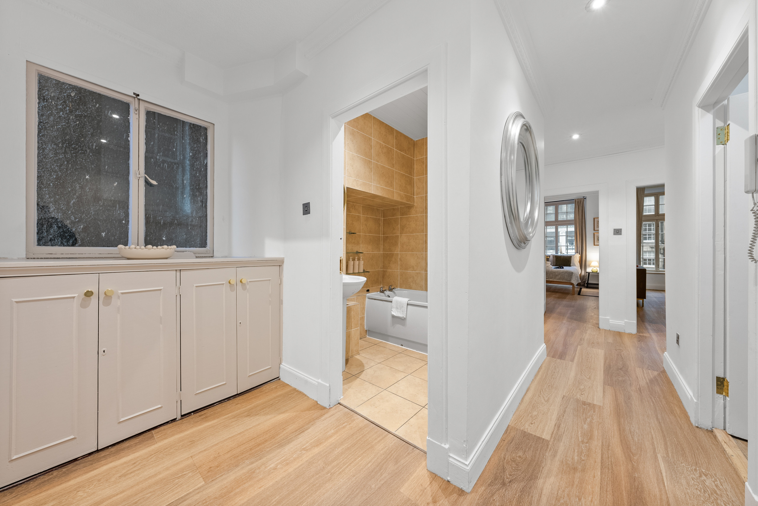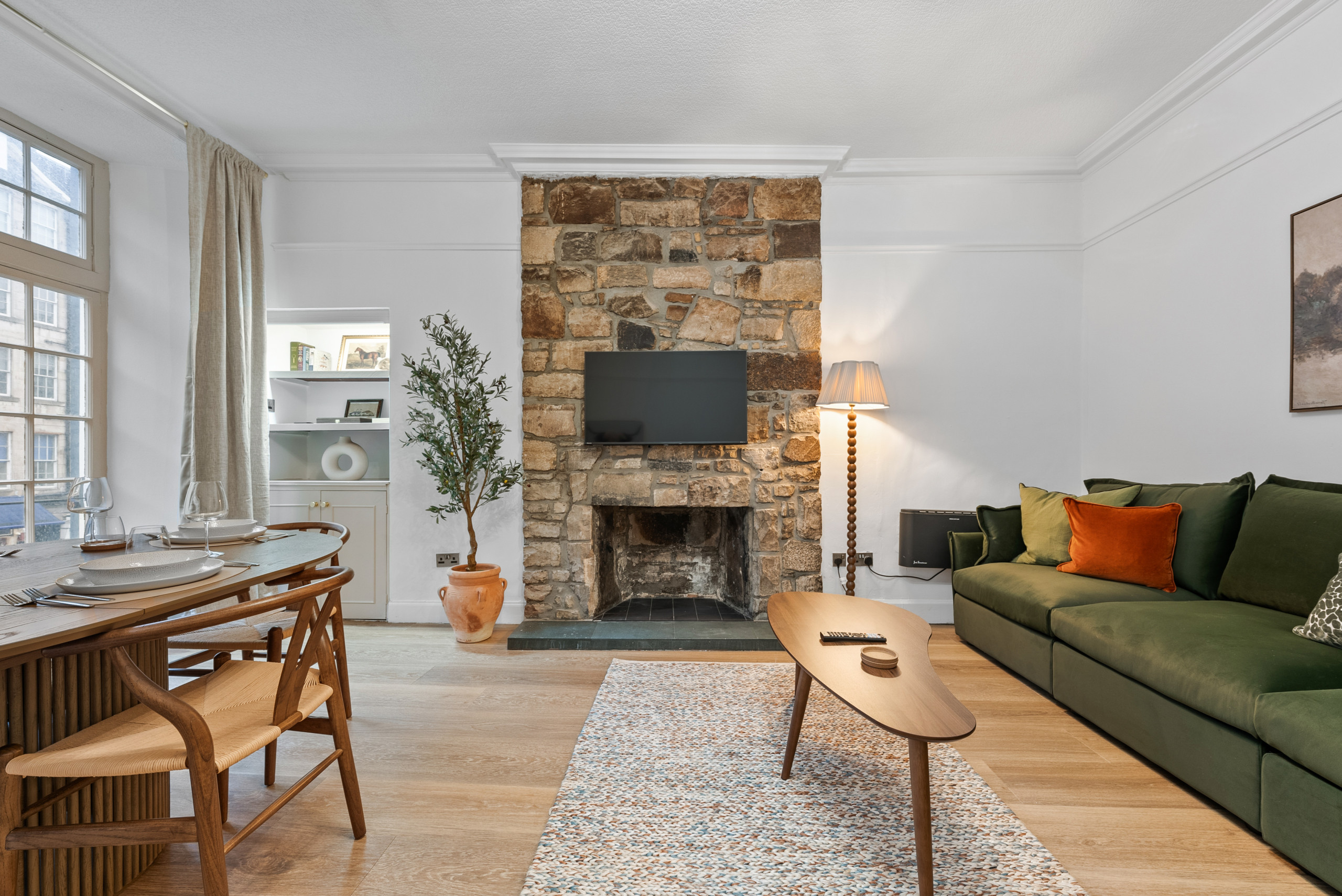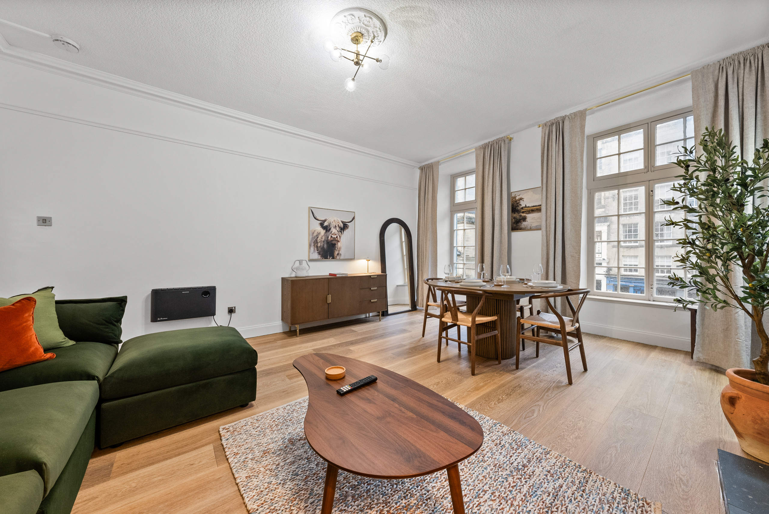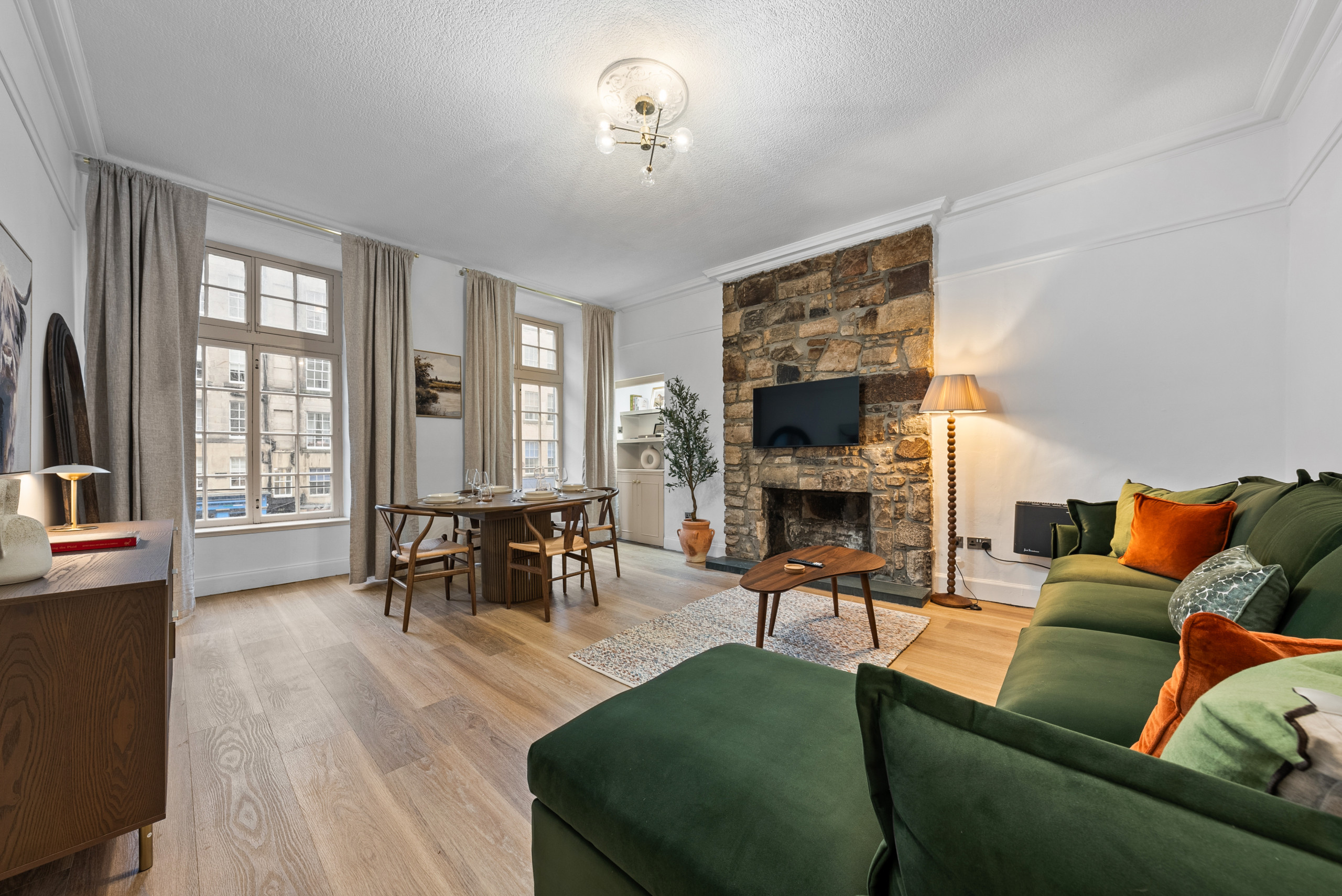 The apartment is situated in a fantastic central area of Edinburgh, within easy reach of many of the city’s top attractions. You can enjoy a scenic walk to Calton Hill for panoramic views, explore the historic Royal Mile, visit the iconic Edinburgh Castle, or stroll through Princes Street Gardens. The vibrant New Town, with its Georgian architecture, boutique shops, cafés and restaurants, is also nearby, as well as the St James Quarter for shopping and dining.